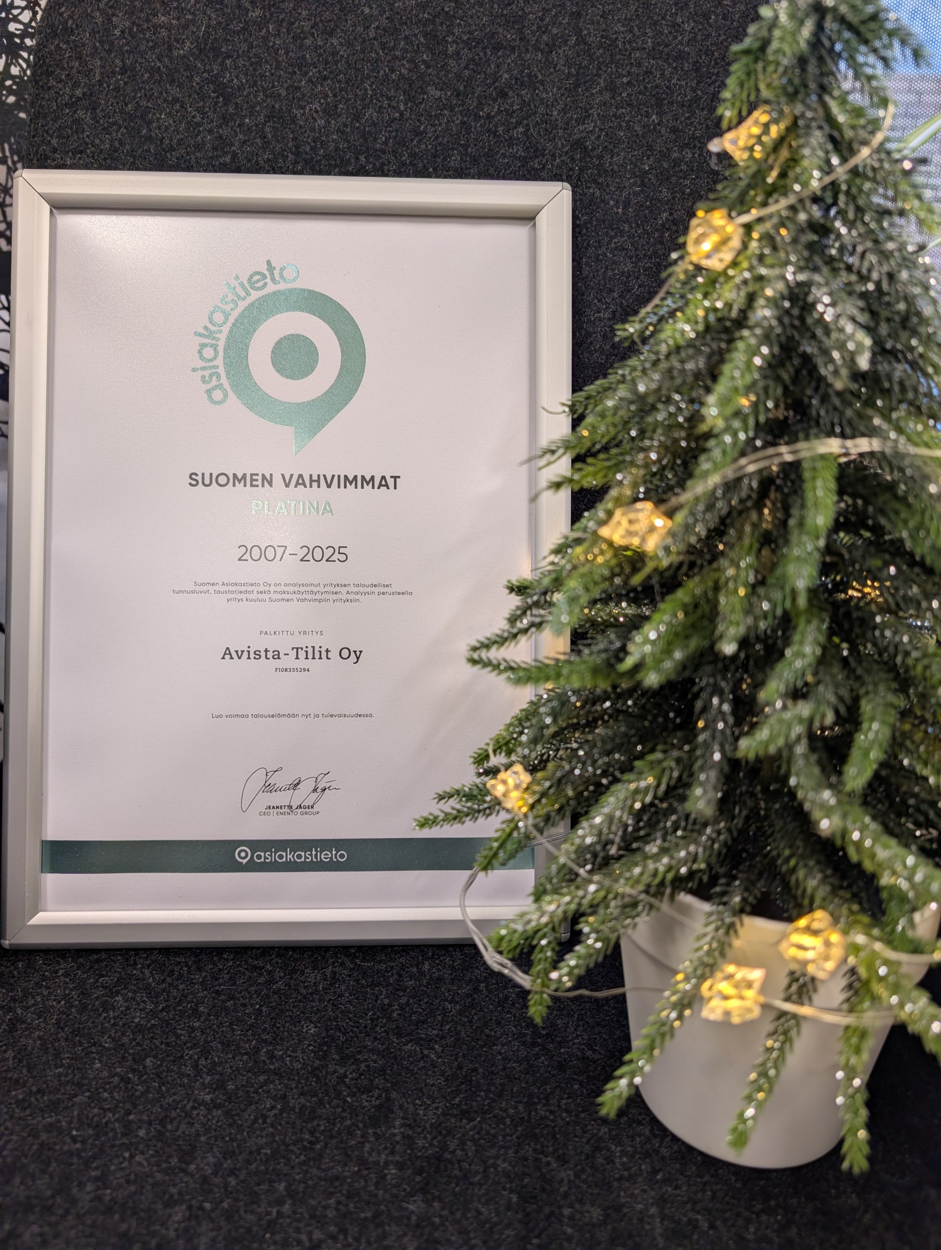 Avista-Tileille Suomen Vahvimmat Platina -sertifikaatti